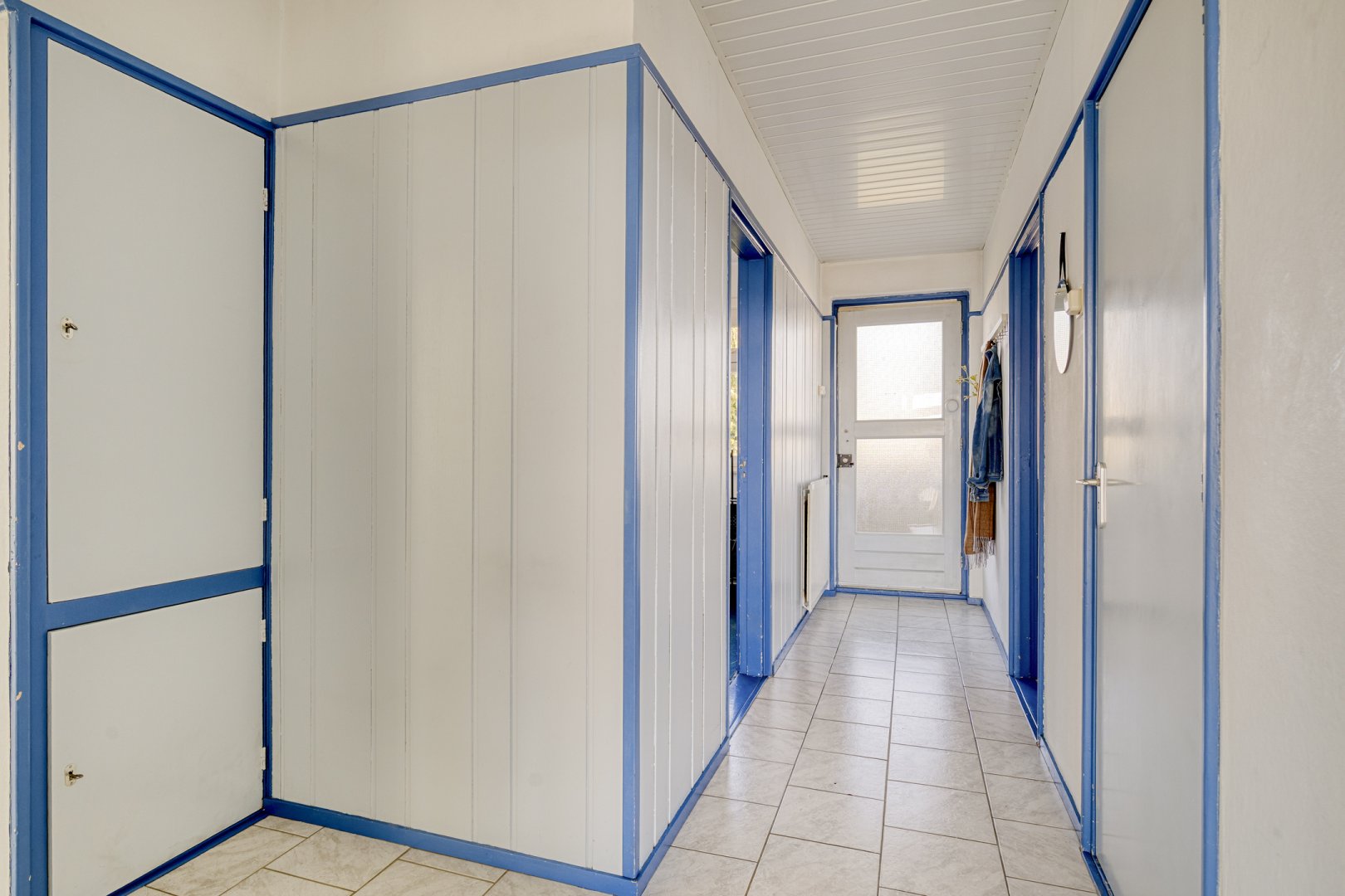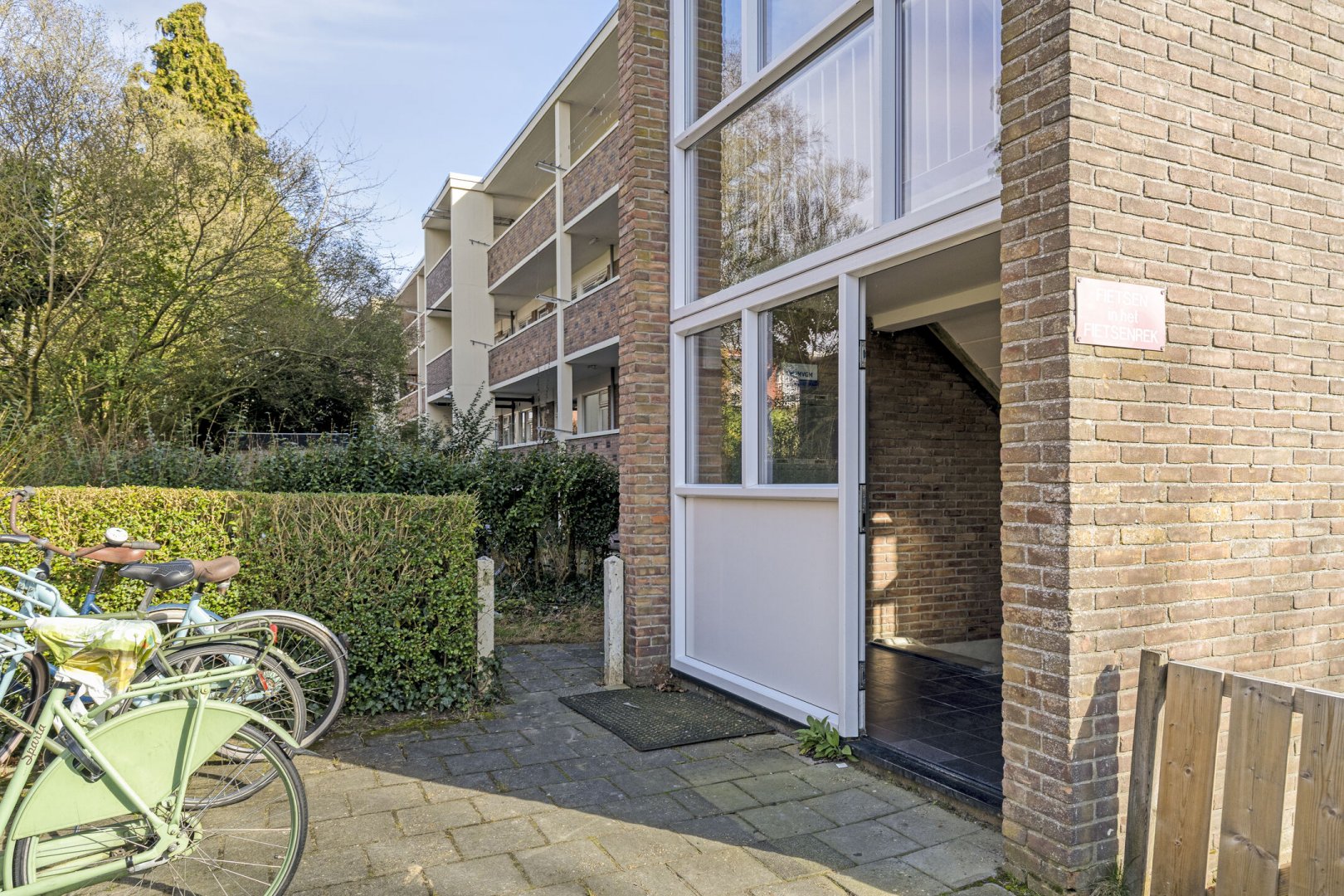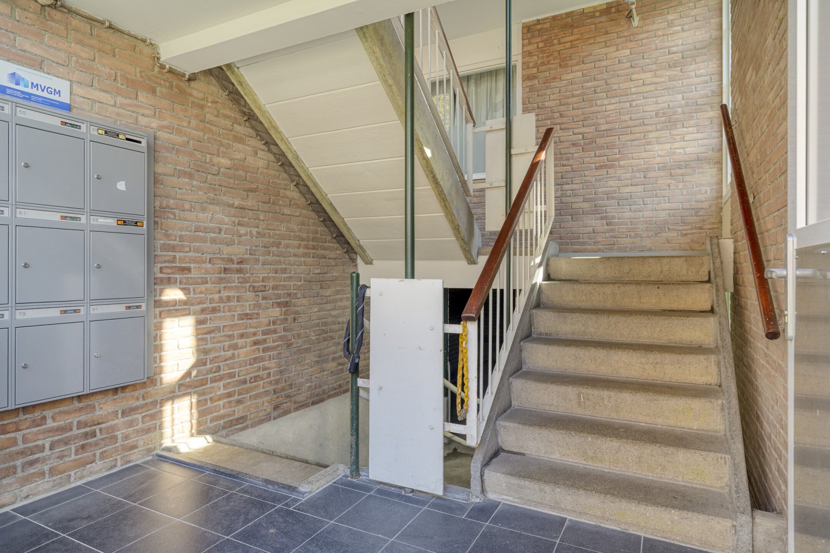 Afgesloten portiek met hal van waaruit je toegang hebt tot de bergingen en het trappenhuis.