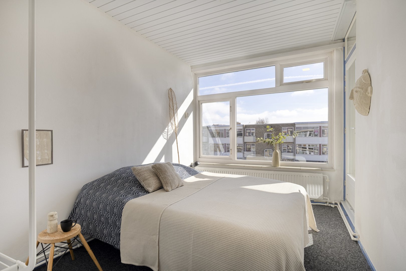 Het appartement beschikt over drie slaapkamers. Eén van deze slaapkamers is alleen bereikbaar via een andere slaapkamer, waardoor hij bijvoorbeeld uitstekend te gebruiken is als werkruimte, hobbyruimte of inloopkast. Ook is er vanuit de woonkamer een deur naar die kamer te maken waardoor er drie slaapkamers ontstaan.